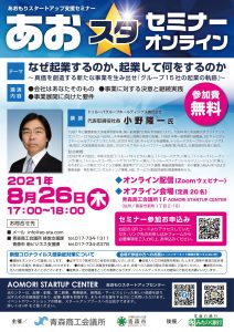 ★オフライン会場:AOMORI STARTUP CENTER 定員20名(青森市新町1-2-18青森商工会議所1階)