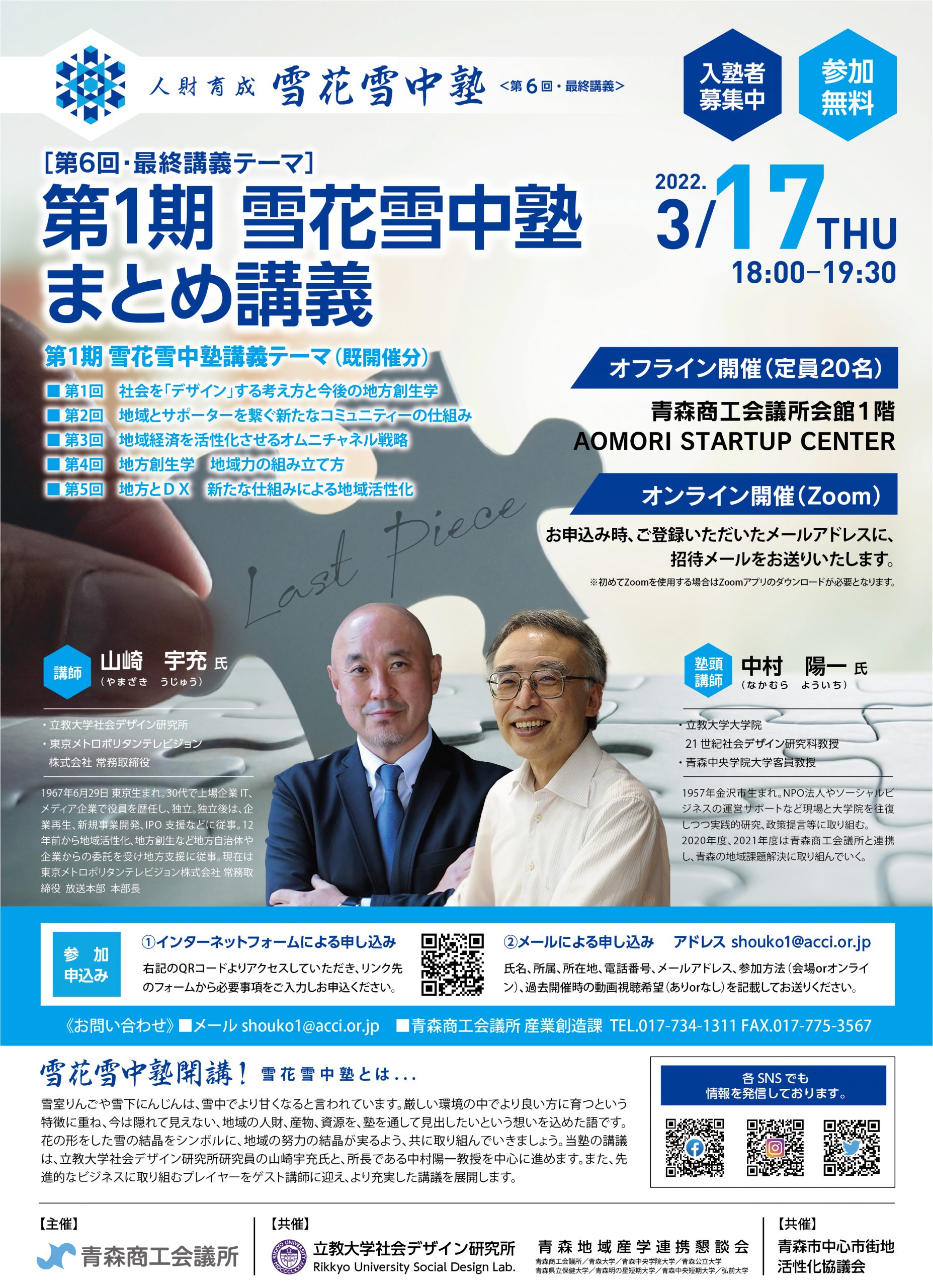 第6回(今年度最終)人財育成雪花雪中塾「第1期雪花雪中塾まとめ講義」開催のお知らせ