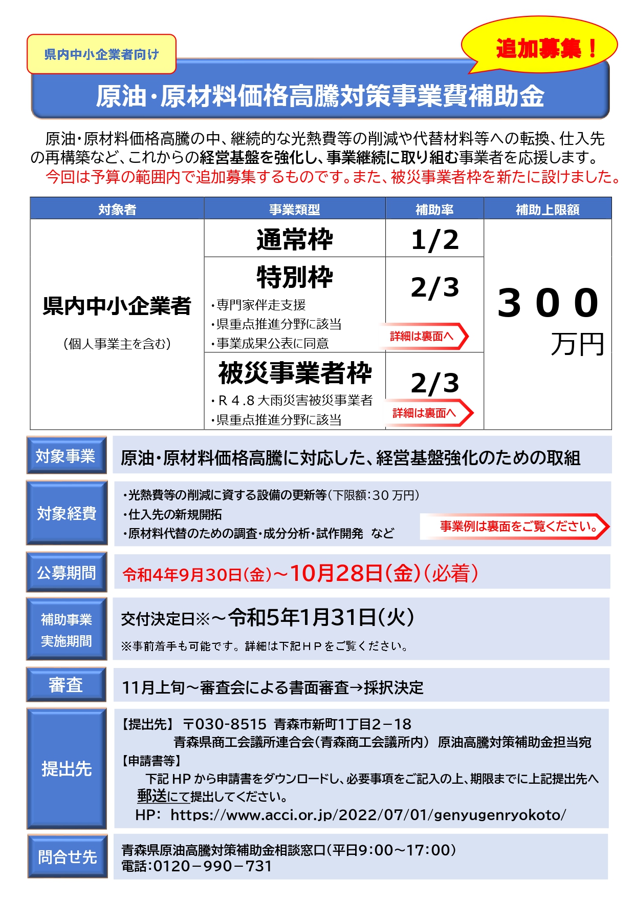 青森商工会議所連合会(青森商工会議所内)原油高騰対策補助金担当 宛