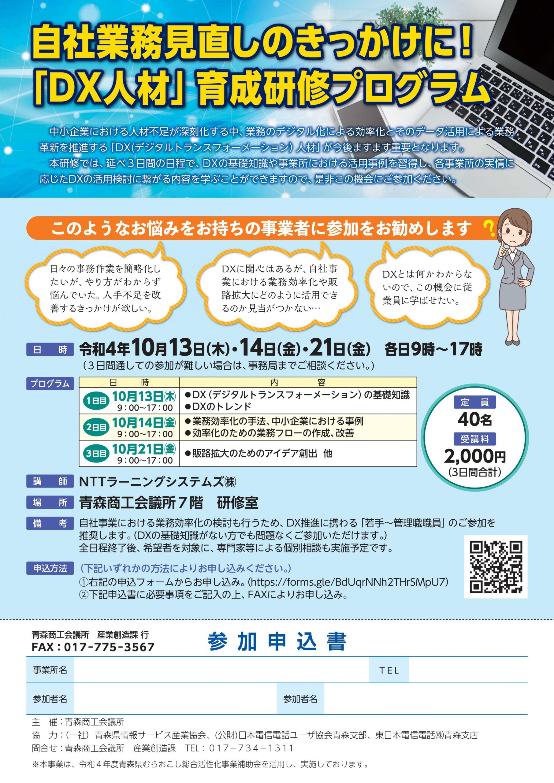 申込方法:下記申込フォームからお申し込みいただくか、「セミナー参加申込書」をダウンロードのうえ、必要事項を記入し、FAX(017-775-3567)にてお送りください。