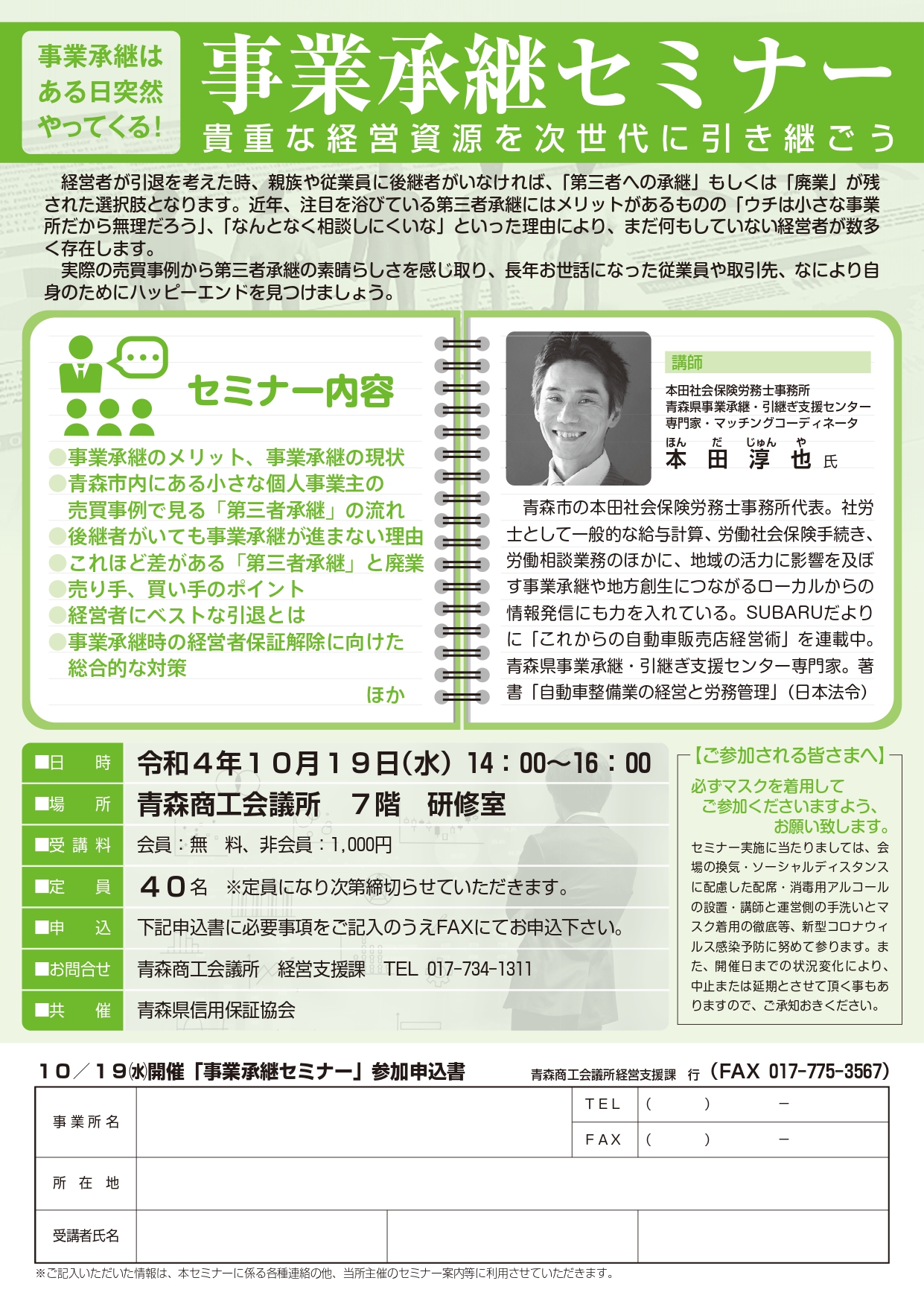 事業承継セミナー~貴重な経営資源を次世代に引き継ごう~