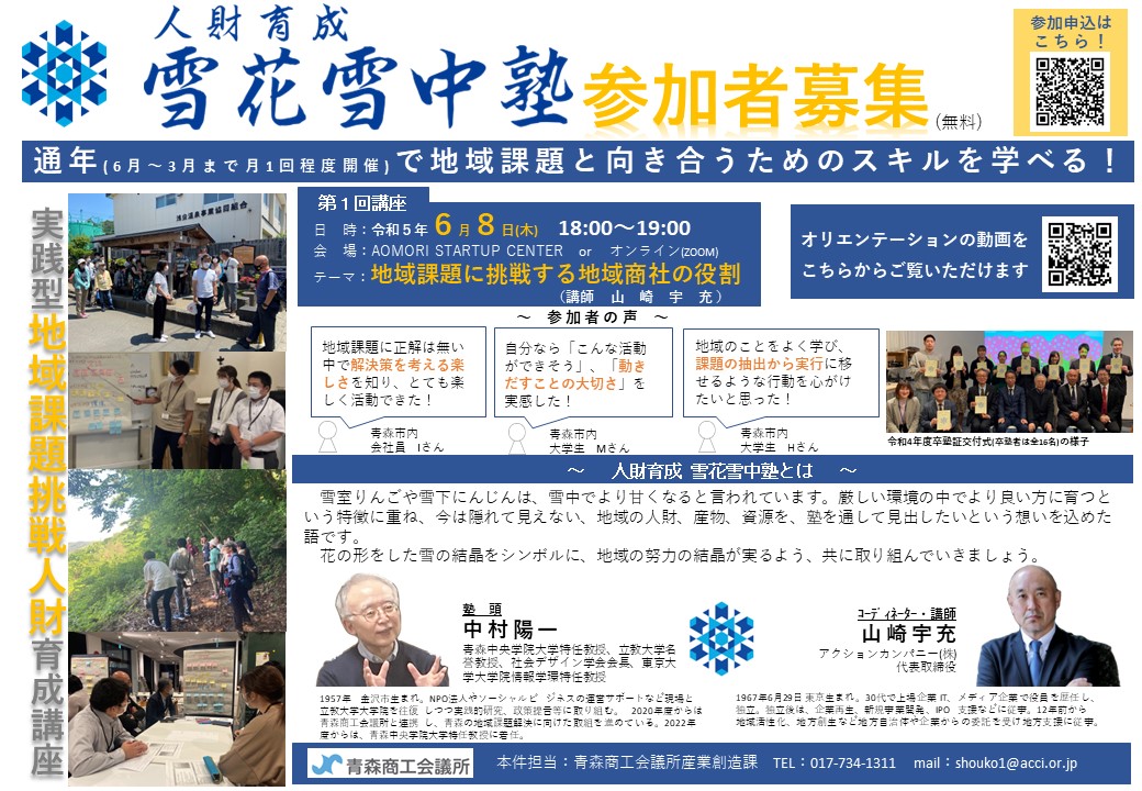 令和5年度「人財育成 雪花雪中塾」開講のお知らせ(6/8~)