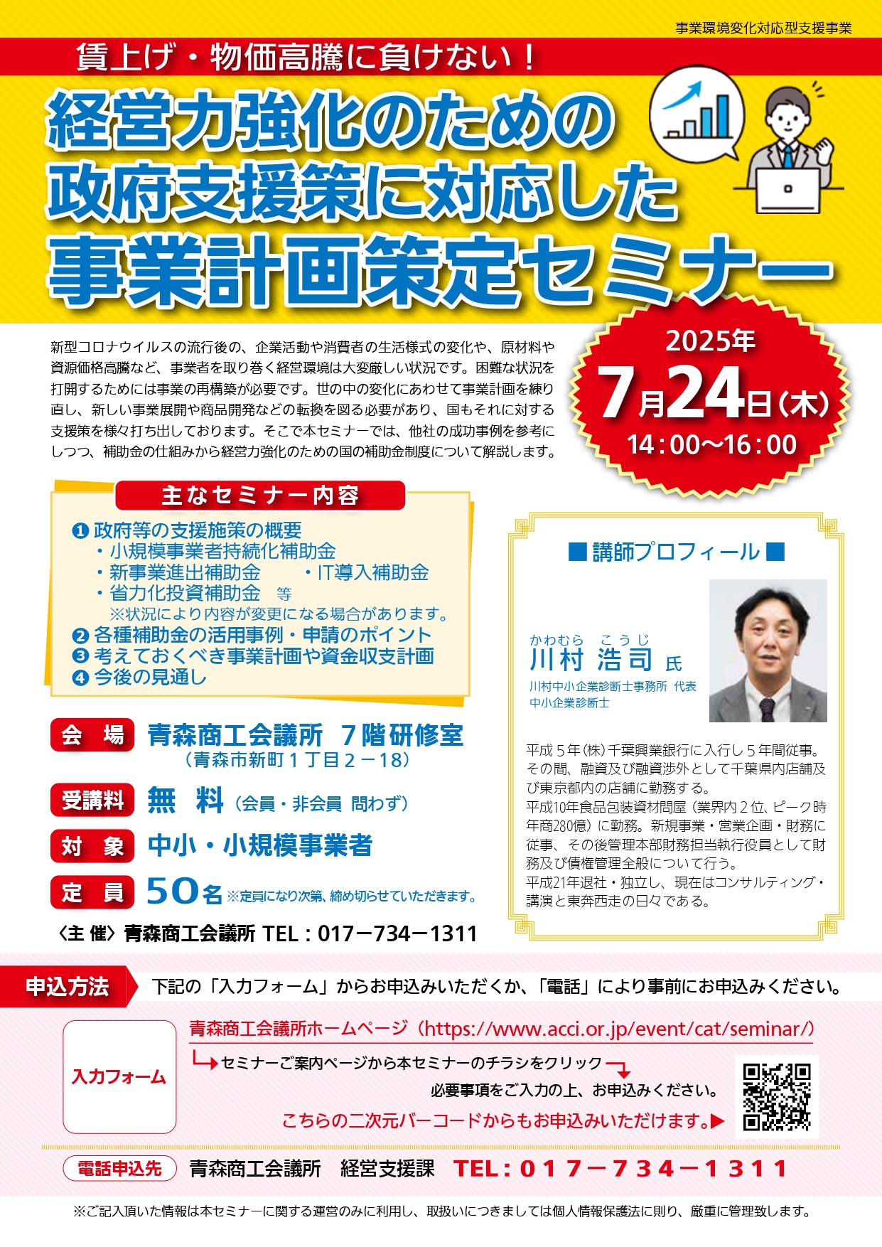 新型コロナウイルスの流行後の、企業活動や消費者の生活様式の変化や、原材料や資源価格高騰など、事業者を取り巻く経営環境は大変厳しい状況です。困難な状況を打開するためには事業の再構築が必要です。世の中の変化にあわせて事業計画を練り直し、新しい事業展開や商品開発などの転換を図る必要があり、国もそれに対する支援策を様々打ち出しております。そこで本セミナーでは、他社の成功事例を参考にしつつ、補助金の仕組みから経営力強化のための国の補助金制度について解説します。