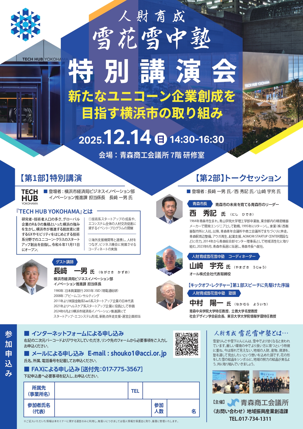 当所主催事業「人財育成雪花雪中塾」で塾頭を務めていただいております青森中央学院大学中村陽一特任教授が主催する新たな取組について参加者募集の周知をさせていただきます。