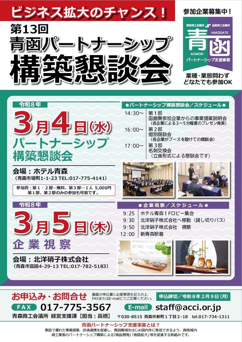 • 青函事業所間のビジネスマッチングを支援する「パートナーシップ構築懇談会」を