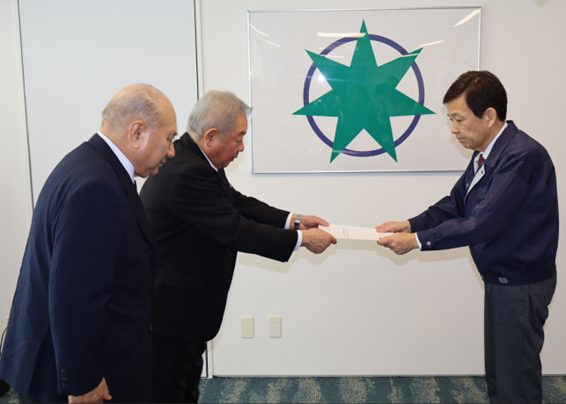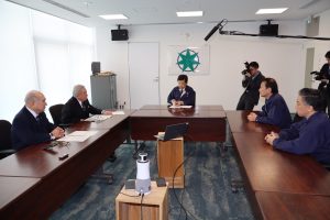 当会議所の倉橋純造会頭、浪岡商工会の一戸善正会長が西秀記市長と面会し、市