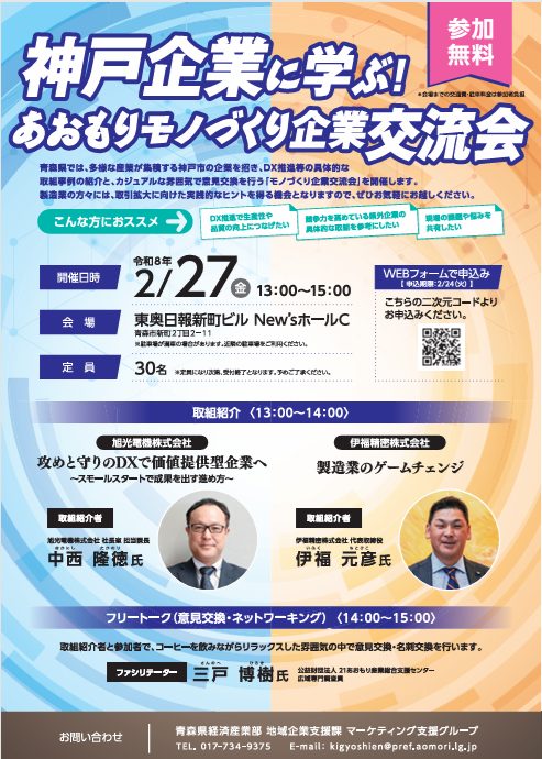 詳しくはこちら👉【チラシ】神戸企業に学ぶ!あおもりモノづくり企業交流会