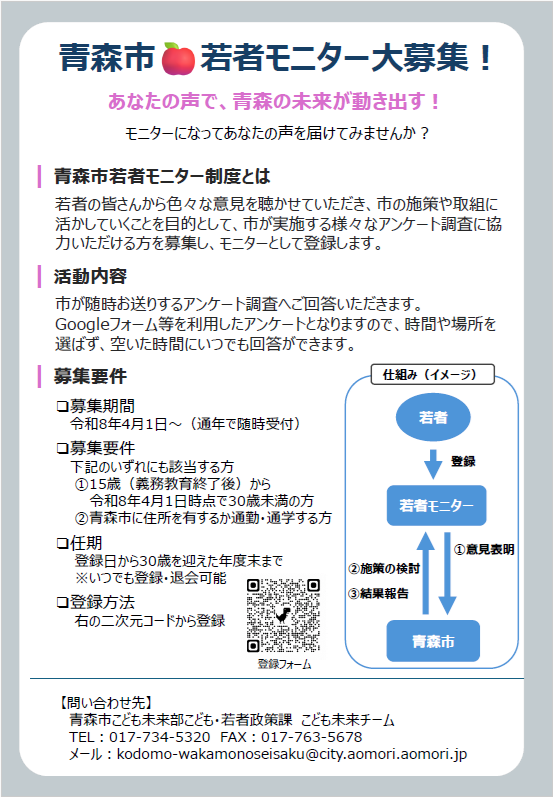 詳しくはこちら👉青森市若者モニター募集チラシ